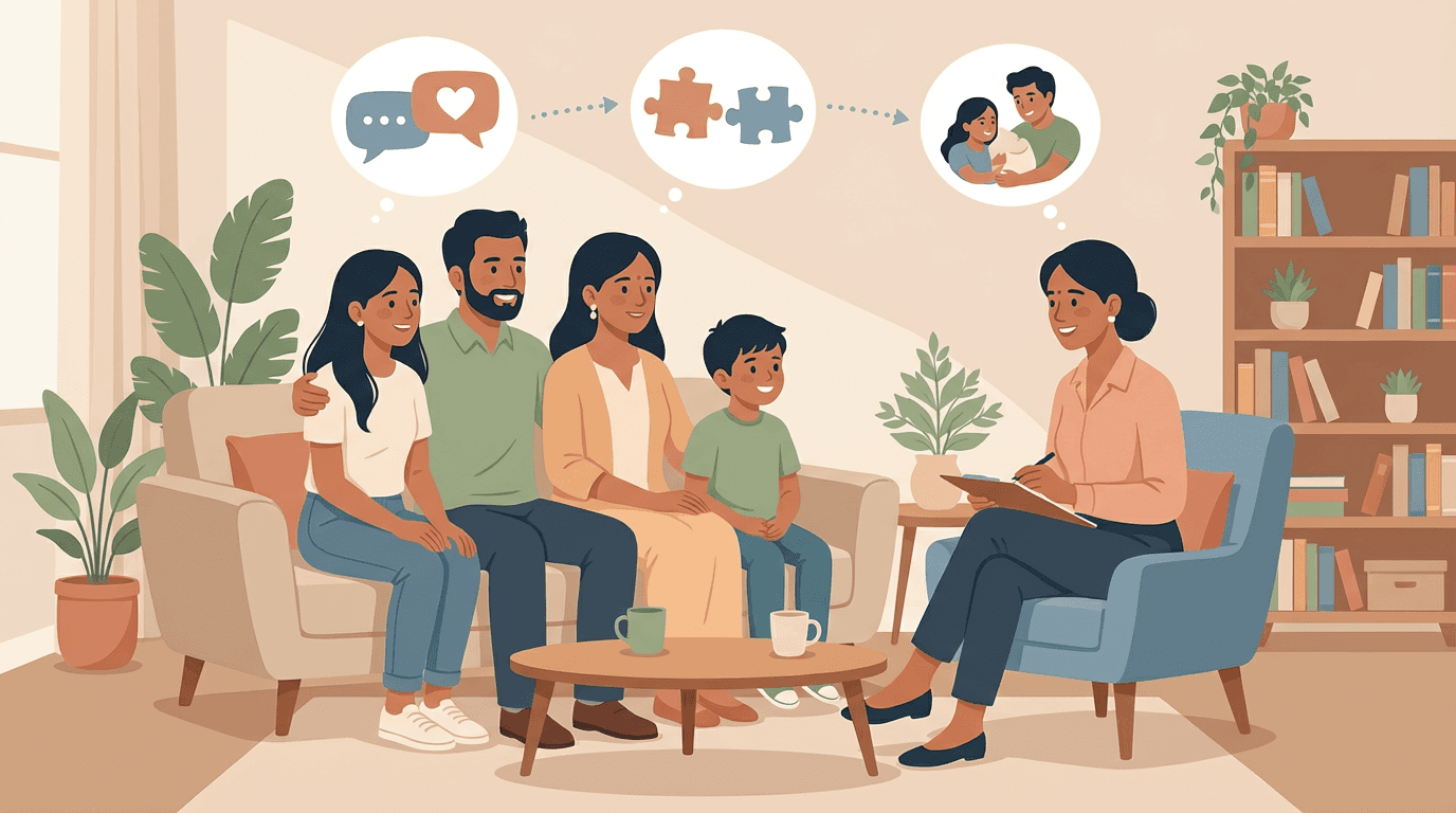 Family counseling helps address ongoing conflicts, emotional distance, and communication difficulties within families. Therapy supports family members in expressing themselves openly, listening with empathy, and developing healthier ways to respond to stress, change, and challenges that affect the family system.